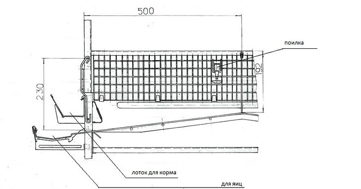 Клетки изготовляются из оцинкованной сетки. Стенки и потолок из сетки размером ячейки 25х25 мм., диаметр прутка 1,8 мм., пол из сетки с размером ячейки 12х24 мм. (или 12х12 мм.), диаметр прутка 1,4 мм.